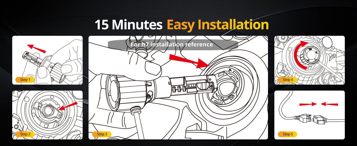 Upgrade CanBUS-Ready & Anti-interference (EMC) Design: Can be installed right out of the box!* Plug-and-Play direct replacement of H7 Halogen Headlight Bulb(Only for Spring Adapter) ; In addition, *Some headlights are more difficult than others to access.