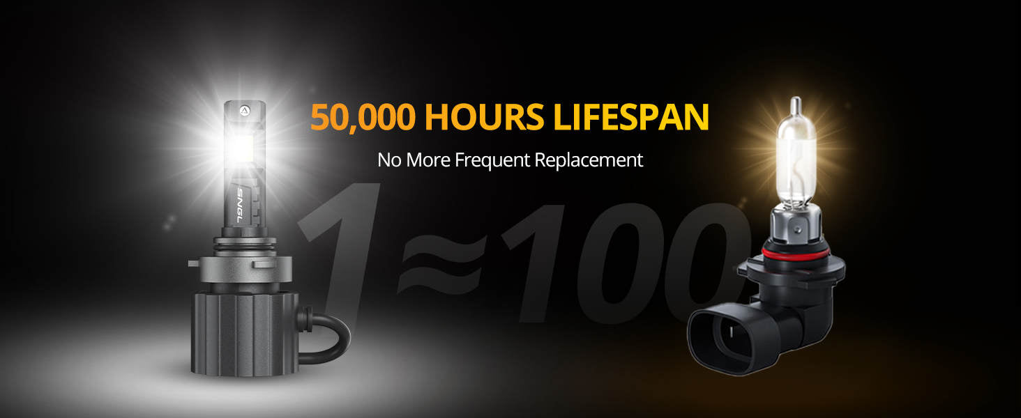 - 50,000Hr Life Span: SNGL HB3 9005 headlight bulbs built in a Powerful Cooling Management System and use the best components and high quality materials, ensuring more than 50,000 hours continuous lighting. IP67 Rain-Resistant Build, exclusive 75W LED drivers with over-heat & Fan Failure Protection ,and Fan works even in extreme situations. Does not require frequent replacement.
