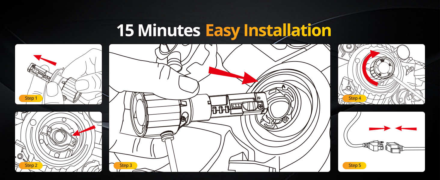- Upgrade CanBUS-Ready & Anti-interference (EMC) Design: Can be installed right out of the box!* Plug-and-Play direct replacement of 9003 H4 Halogen Headlight Bulb; In addition, *Some headlights are more difficult than others to access. Recommended applications: 9003 H4 High and Low beam projector or reflector housing Type. [ Not for use in high/low + DRL Combo Beam applications ].