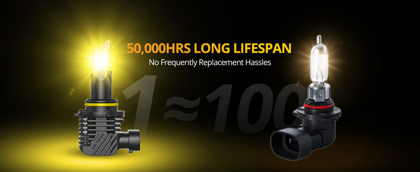 50,000hours lifespan. Mini size, easy to install, plug and play. No noise, the best choice for h10/9145/9140 fog light or DRL replacement.
