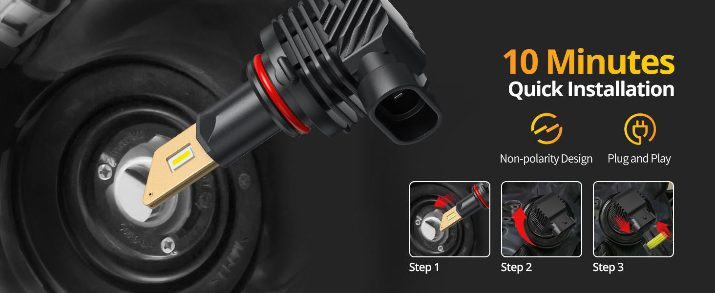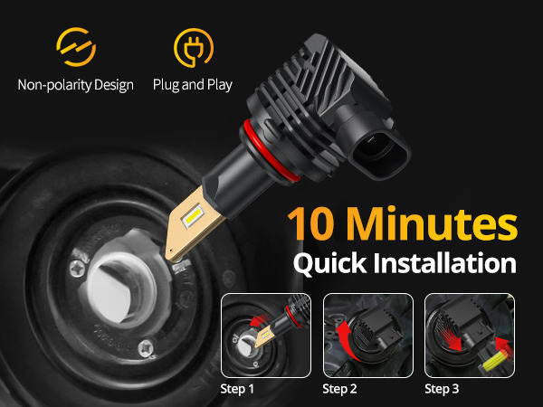 50,000hours lifespan. Mini size, easy to install, plug and play. No noise, the best choice for 9006 hb4 fog light or DRL replacement.