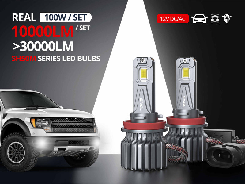 Visualizza tutti i dettagliSNGL SH50M Series: H11 H9 LED Headlight Bulb Combo [Perfectly Fit In DC or AC 12V Vehicles-2025 Newest Design] SNGL H11 H9 LED bulbs, featuring th...